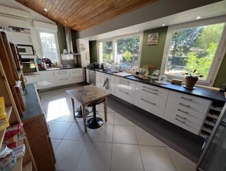 Elle se compose au rez de chaussée, d'une grande pièce de vie de 55.95 m², d'une spacieuse cuisine entièrement équipée de 19.17 m², d'une bibliothèque, d'un bureau, de deux toilettes, d'une salle de bains et d'une belle suite parentale de 40.72 m² avec dressing et salle de douche.